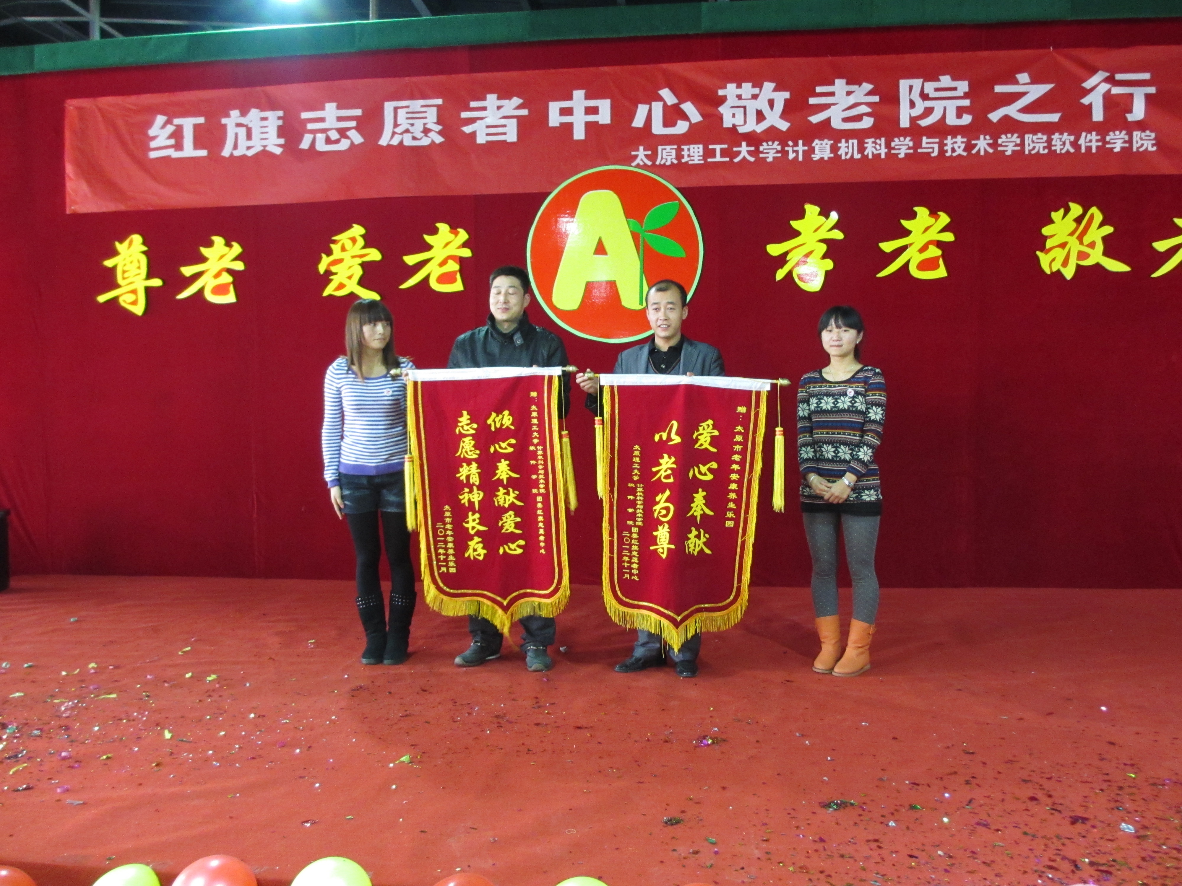 11月10日,永利集团官网红旗志愿者中心组织50余名志愿者赴太原市老年安康养生乐园开展爱心捐赠和服务活动。院党委副书记池卫平、院团委书记王飞参加了此次活动。