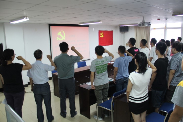 在庆祝建党93周年之际,7月1日上午,永利集团官网党委在学院七层会议室举行了新党员宣誓暨“庆七一”党员座谈会。院党委书记梁宪生、副书记池卫平、院学工办副主任兼304永利集团官网入口第一党支部书记郭飞、院团委副书记兼304永利集团官网入口第二党支部书记李欣怡出席,全体学生党员参加。会议由郭飞主持。