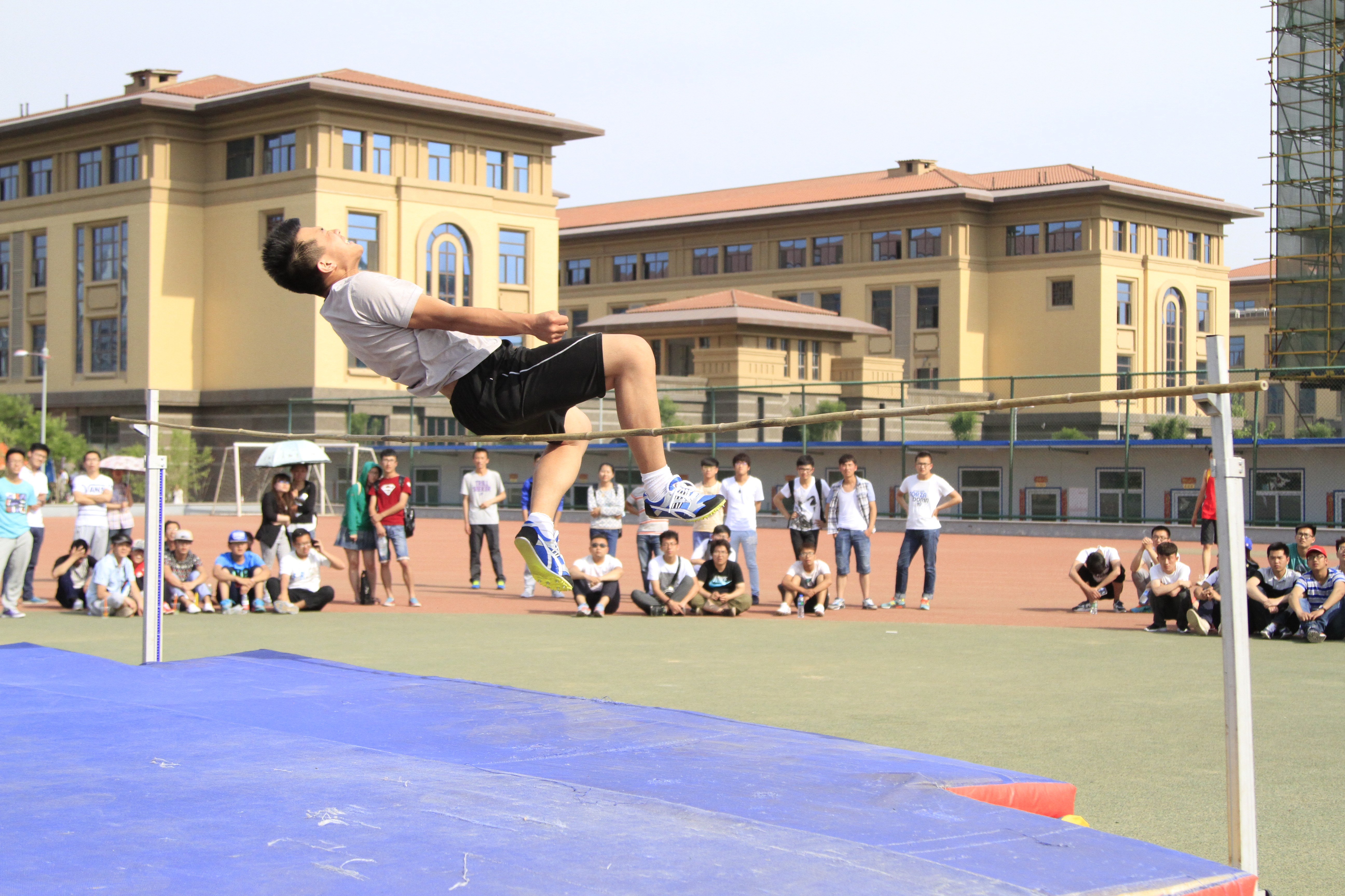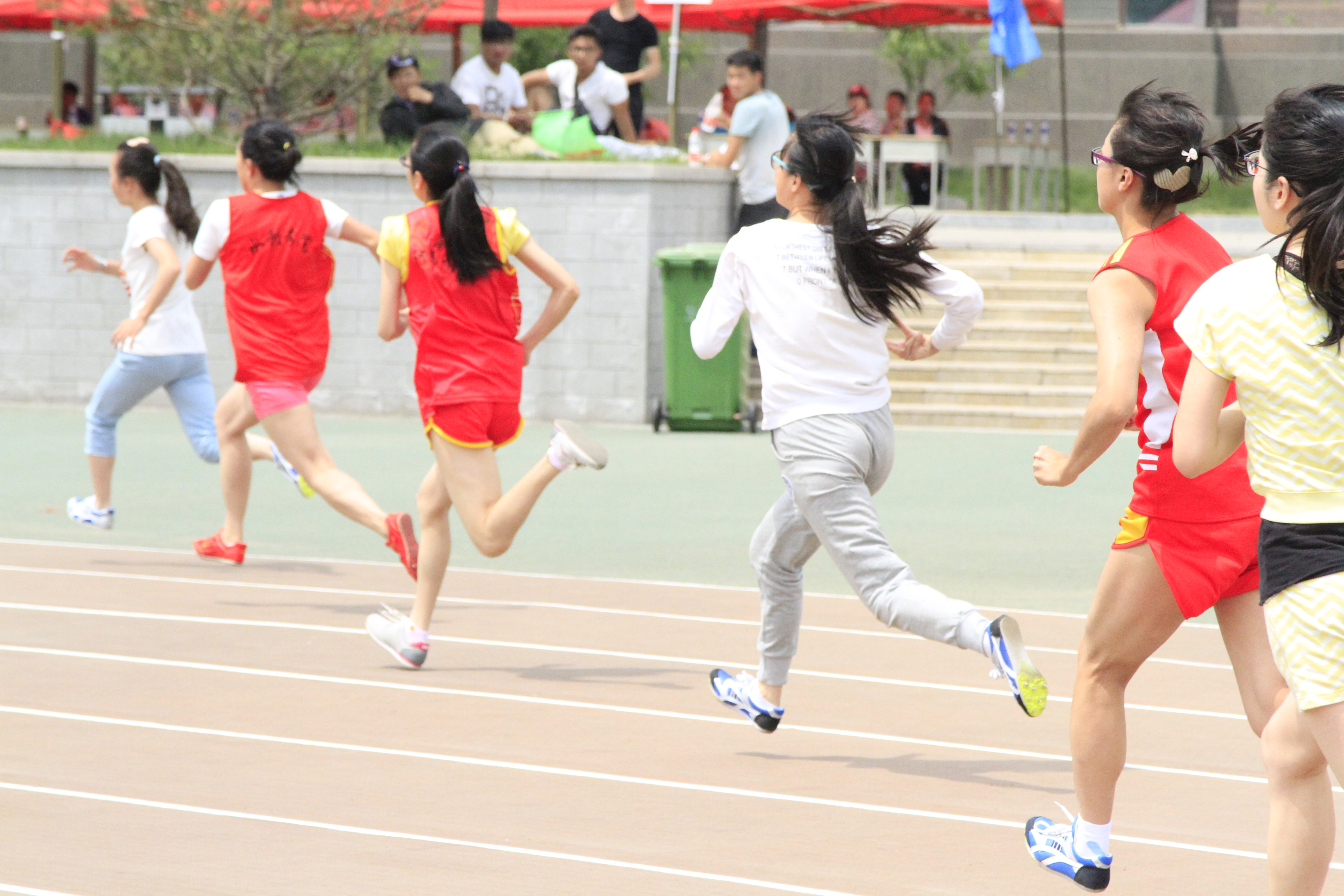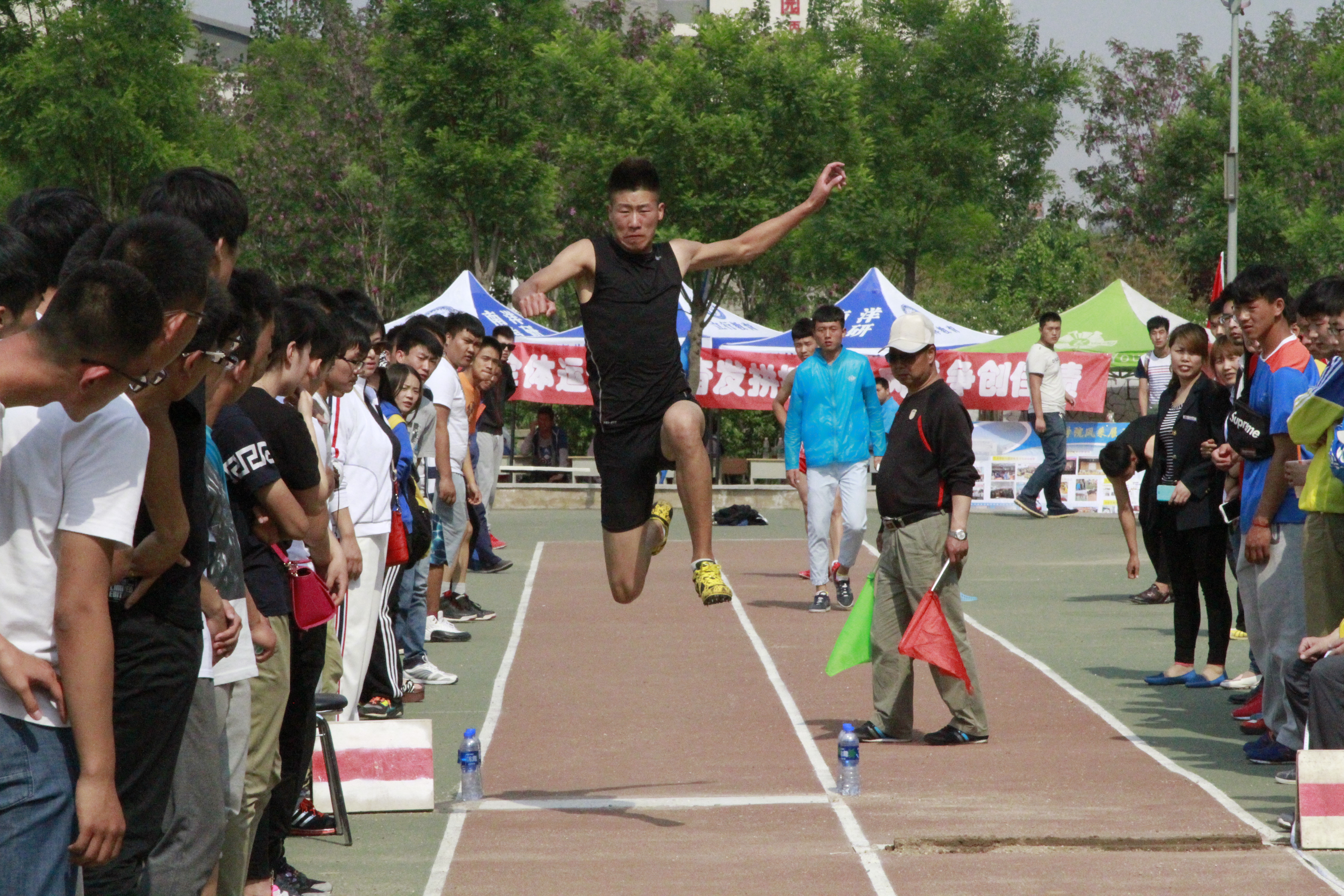 在为期两天的校运会中,精彩不断。运动健儿们在赛场上尽情挥洒着汗水,观众们在场下掌声如雷。随着那一声声“预备”声响起,运动健儿们开始在属于他们自己的舞台上驰骋,激情飞扬,奋力拼搏。他们以最好的姿态在赛场上展现了他们最好的风貌,争取“更高,更快,更强”。100米跨栏的赛场上,运动健儿们雄姿英发,飞跃一个个障碍栏;操场跑道上,运动员们虽然已经汗如雨下,筋疲力尽,但他们咬紧牙关,坚持到最后;跳高场上,运动员们纵身一跃,记录一次次被刷新。