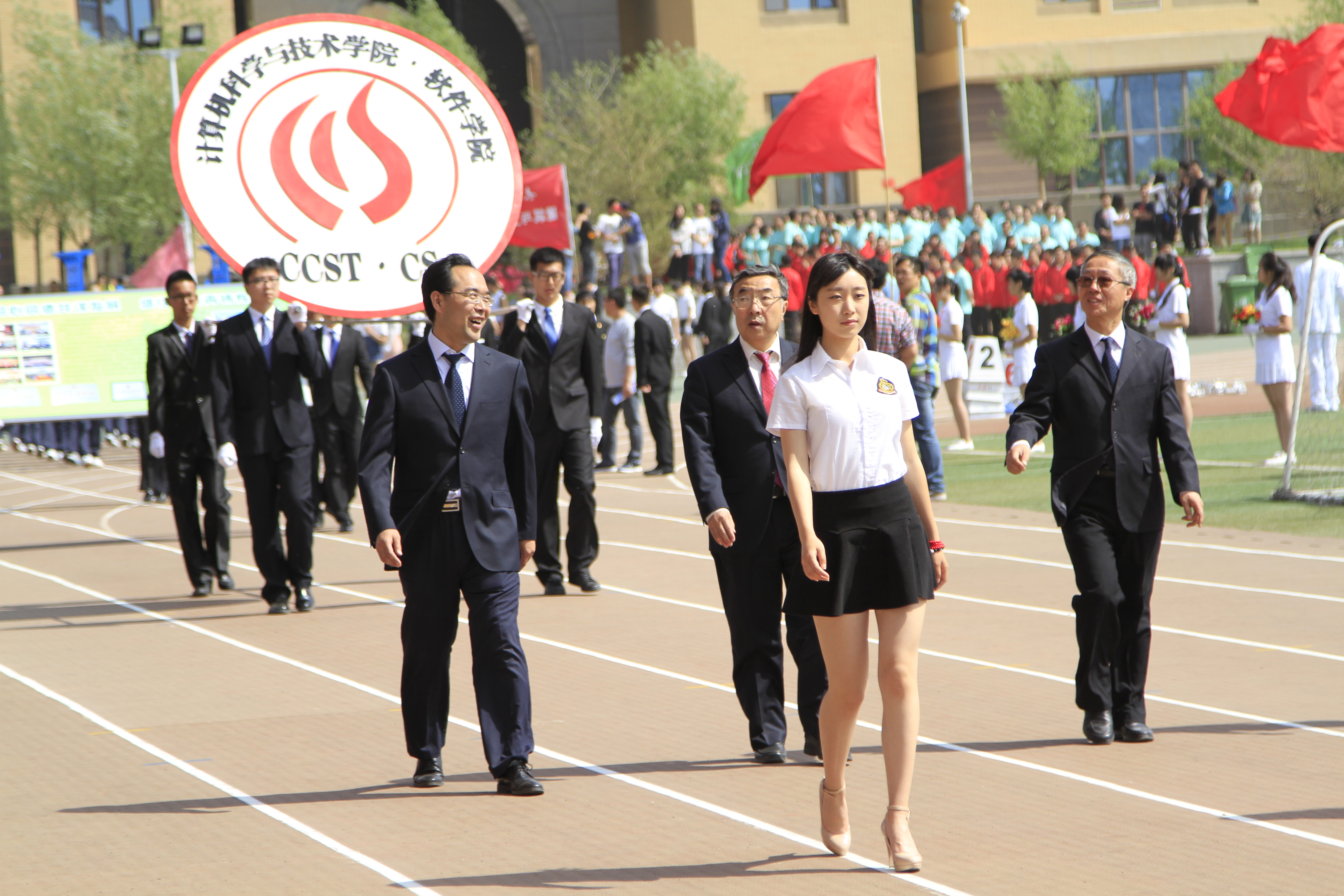 方阵展示结束之后,校长吕明做开幕式祝词,寄语校运,展望未来,鼓励运动员拼搏赛场,一展英姿,取得优异的成绩。之后,校党委书记吴俊清宣布田径运动会的正式开始。