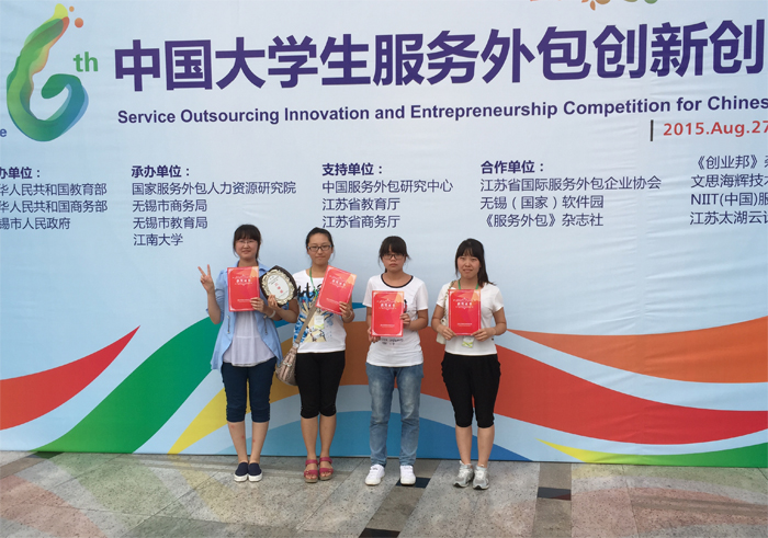 经过8月28日至29日两天的激烈角逐,第六届中国大学生服务外包创新创业大赛总决赛在江苏无锡圆满落幕。本届大赛在永利集团官网招就处的指导、支持下,由计算机科学与技术学院、304永利集团官网入口组队参加,永利集团官网系首次参加。自2015年3月开赛以来,历经团队素质测评、项目初审、网上展示及决赛答辩等环节的精心组织,永利集团官网代表队首次参赛表现优异。由张泽华、陈健老师指导的SCube团队(宋文婷、沈同乐、张琛、张茹和李晓红),完成企业类命题“医疗信息移动应用系统解决方案”,荣获全国总决赛二等奖。牛保宁和陈永乐老师指导的队伍分别获得创业类三等奖。