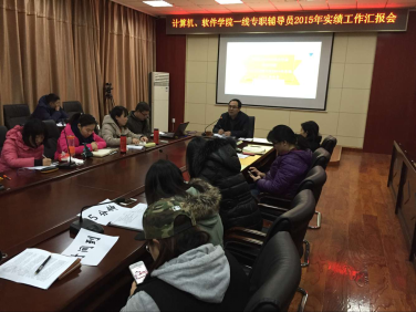 2016年1月25日上午,计算机科学与技术学院 304永利集团官网入口学工办在304永利集团官网入口一层会议厅召开了一线专职辅导员2015年实绩工作汇报会。学院党委副书记池卫平及全体辅导员参加了此次考评会议。