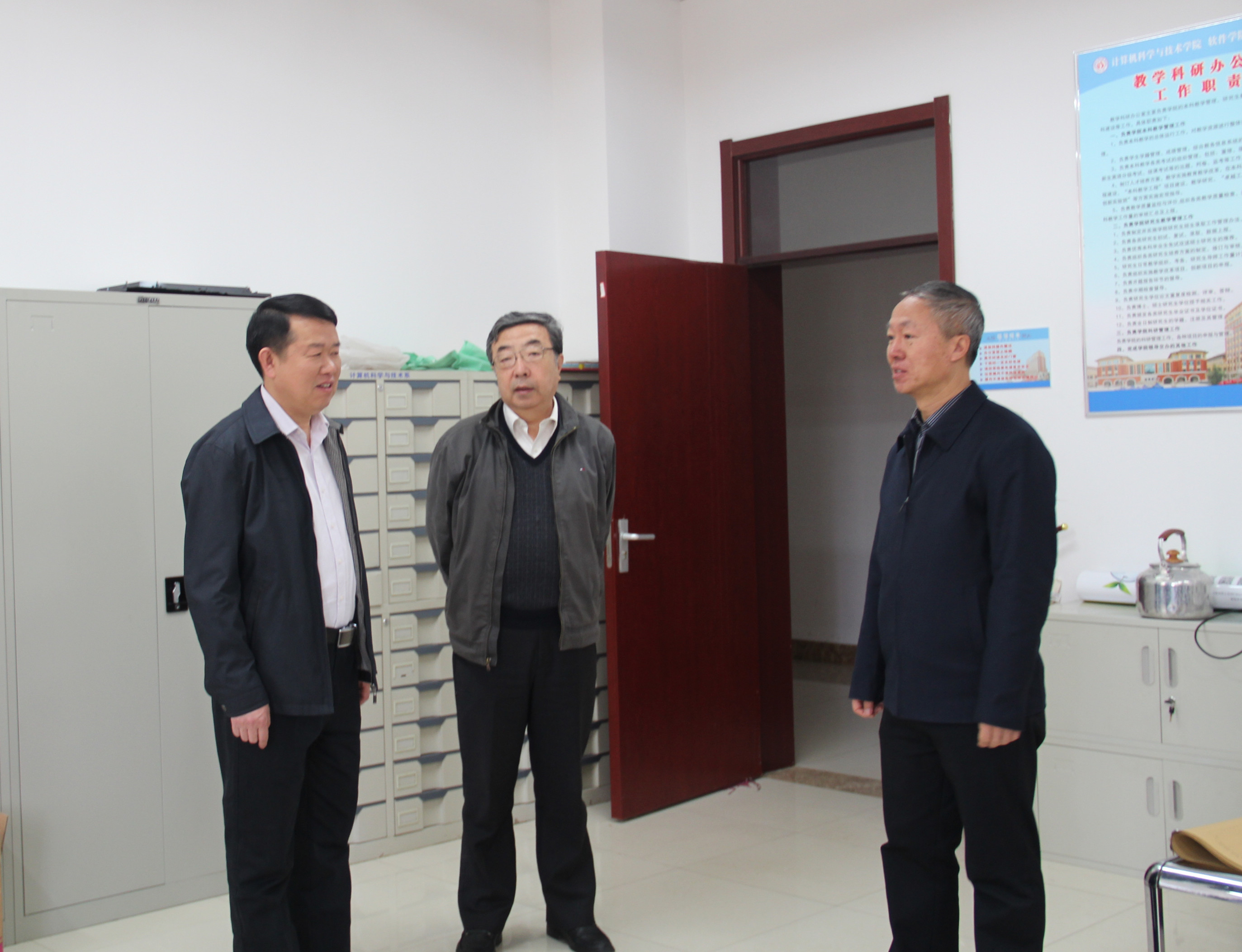 会前,在梁书记和陈院长的陪同下,沈书记参观了学院办公环境和研究生研究室等。