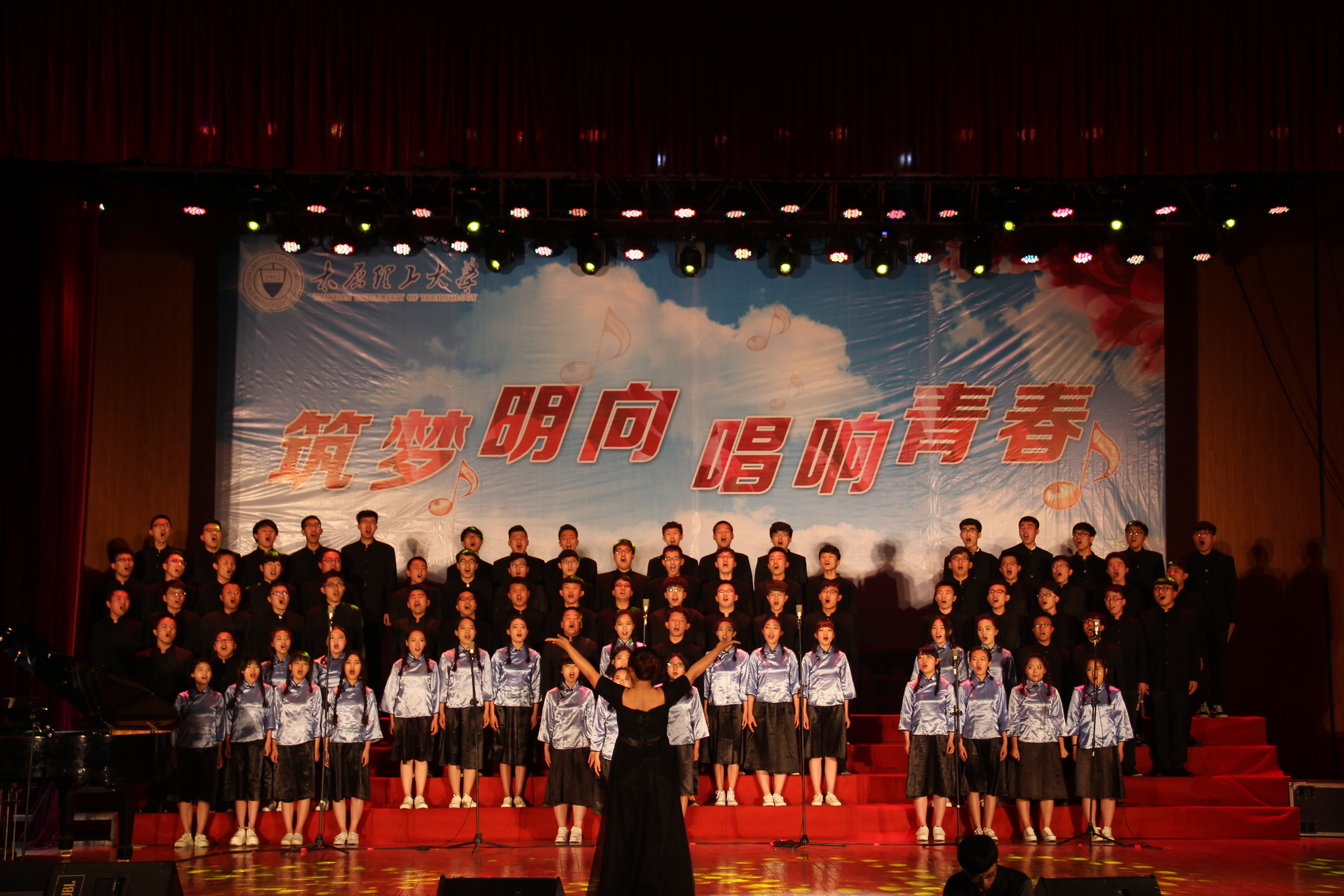 5月6日晚七点,由校艺术团主办的“筑梦明向,唱响青春”纪念五四运动97周年暨母校114华诞合唱比赛在明向校区学生活动中心隆重举行。比赛时长三个多小时,共22支学院队伍参加了比赛。在主持人精彩的报幕中,合唱比赛拉开了帷幕。老校友为大家带来优美深情的独唱《鸿雁》,他声情并茂,表达了对理工大的深爱和留恋,唱出的更是一种情怀。