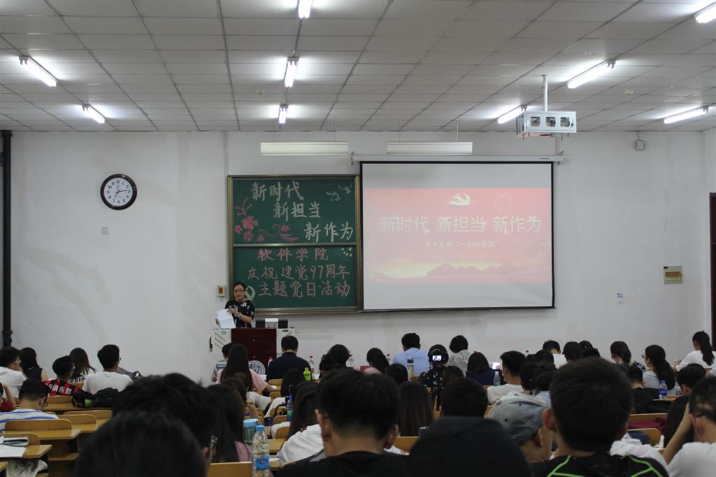 中国共产党成立97周年之际,304永利集团官网入口党委于7月4日晚在明向校区行知楼C122举办了“新时代新担当新作为”主题党日活动暨第15期一刻特派员活动,学院党委书记池卫平、院长金燕、党委副书记闫新以及全体党员一同参加了本次活动。活动由软件第四本科党支部组织委员阎瑞婷主持。