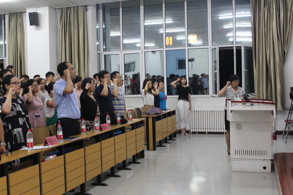 首先,闫新阐述了本次活动的目的和意义,讲述了共产党的建党史并强调了一刻钟的重要性,鼓励和提醒大家只争朝夕,分秒必争,希望全体学生党员能够带动青年学生努力做到习近平总书记在北大座谈会上对青年提出的四点希望:爱国、立志、求真、力行。接着,三位一刻特派员分别以不同的主题进行了演讲,荆泽康以“中国走进新时代”为主题,分别从新时代中国特色社会主义、厉害了我的国、青年党员我们在路上这三个方面进行了阐述;郝宇哲以“大学生,你身上的责任”为主题,阐述了当代大学生所肩负的责任,并对责权利表达了自己的理解,倡议大学生永远只做自己认为对的事情,而不是别人建议你做的事情;池冠宇以“新作为”为主题,从一名志愿者的角度出发,表达了对志愿服务的热情,并呼吁广大青年勇做坚定者,用新担当指引新作为。其次,曹锐、高保禄、谢红薇等3位老师进行了点评并根据自身实际与大家分享了自己与党有关的故事。随后,池卫平进行总结发言,他指出国家兴亡、匹夫有责,希望在新时代下全体学生党员能够认识到自身的责任与担当,付诸行动,在学生中起到模范带头作用,做一名优秀的共产党员,做一名德智体美劳全面发展的有为青年。最后,在金燕院长领誓下,在场全体党员面向党旗重温了入党誓词。