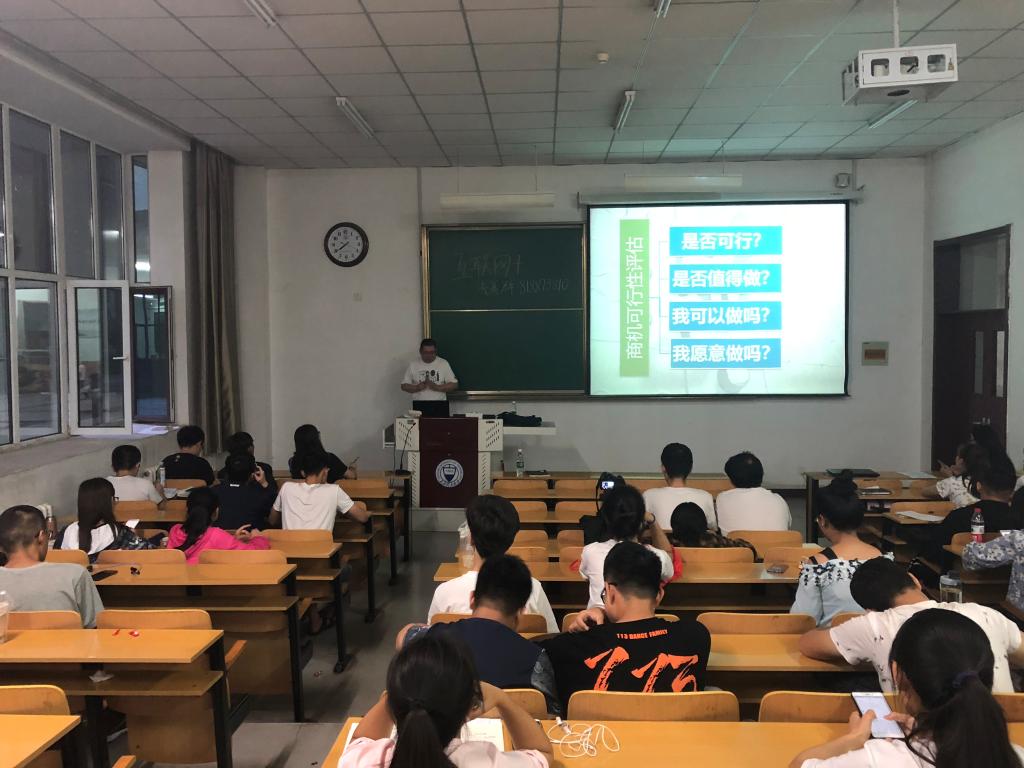 培训开始,王老师首先为大家讲解了创业的各个阶段,并与同学们结合自身生活实际探讨了对“创新创业”的认识。接下来,王老师从“创业项目可行性”、“创业项目价值”、“创业项目与自身能力”和“创业项目与自身热情”四个方面对创业商机的可行性做了深入剖析。随后,王老师结合同学们的创业计划书,用具体的案例讲解了创业计划书“收入模式”、“运营模式”、“人员模式”、“独特性”四个方面的写法规范。会上,同学们积极提问,王老师也耐心地对大家的问题一一做了解答。最后,闫新书记对本次培训会作了总结发言,同时,闫书记也提出希望参会队员认真体会本次培训内容,优化原先的参赛方案,争取在决赛中再创佳绩。参会同学纷纷表示本次培训使自己收益匪浅,培训会在热烈的氛围中落下帷幕。