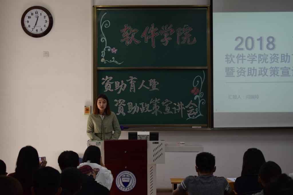 为积极响应党的十九大号召,贯彻落实党中央的政策要求,扎实做好家庭经济困难学生的资助工作,帮助家庭经济困难的学生顺利完成学业,304永利集团官网入口于9月29日中午12点30分在明向校区行知楼B118召开了资助育人暨资助政策宣讲会。宣讲会邀请304永利集团官网入口17级辅导员阎瑞婷老师作为主讲人,首届资助宣传大使、“助学、筑梦、铸人”工程参加者和304永利集团官网入口18级各班代表参与此次宣讲会。
