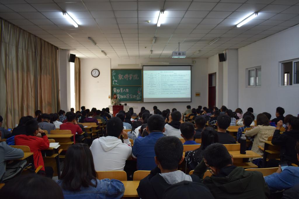 首先,阎瑞婷老师就学校开办资助工作进行阐述。她说明了学生资助的申请条件以及资助的时间跨度,就生源地贷款,绿色通道,奖助学金、勤工助学、贫困认定,“助学、筑梦、铸人”工程,资助宣传大使评选等方面对资助育人政策进行了详细的介绍,同时也向同学们讲解了国家类、校内、以及社会类奖助学金名称及其申请流程。