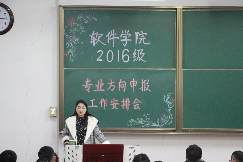 在11月26日的工作安排会上,金燕院长首先为大家阐述了本次会议的目的与软件工程专业开设的四个方向;随后,谢红薇主任讲述了大一到大三学习课程的进阶安排,希望同学们多关注专业与社会以及行业的联系,应该在夯实理论课程的基础上深入探索,结合自身爱好进行选择;接着,李欣怡主任介绍了方向申报的注意事项及时间节点,为学生选报方向提供了数据参考;接下来,池卫平书记为大家介绍了选修方向的盲区,纠正了常见的思想错误,提出了选报时应该理性思考、充分认识专业方向以及实习安排的关系;最后由金燕院长进行总结,提出了“方向不等同于专业、就业不等同于基地、考研不等同于基地”的三点重要结论。