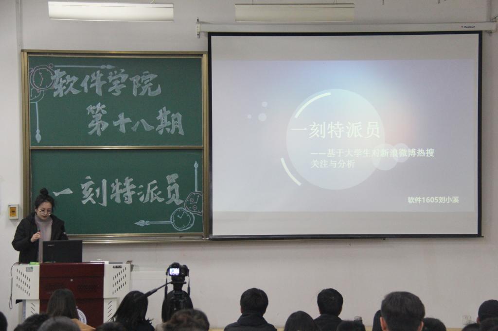 本期“一刻特派员”由软件1606班李晋昊、1605班刘小溪和1603班仝明宇三位同学担任。活动开始,张希琼老师讲解了“一刻特派员”活动的由来以及党建活动的重要意义,并鼓励同学们积极报名参加活动与同学们交流分享自己的所见所闻所感。接着,李晋昊同学首先为大家浅谈了比特币与区块链的相关情况,阐明了它们在网络中存在的意义和发挥的作用;随后,刘小溪同学基于大学生对微博热搜的关注进行了研究与分析,告诫我们要正确利用微博热搜,增强反间意识,维护国家安全;最后,仝明宇同学以“九零后已经开始失去了”为主题,谈到面对童年记忆被尘封,“九零后”身上的责任感日渐加重的现实情况,我们应拥怀新希望,不惧失败,善良勇敢。
