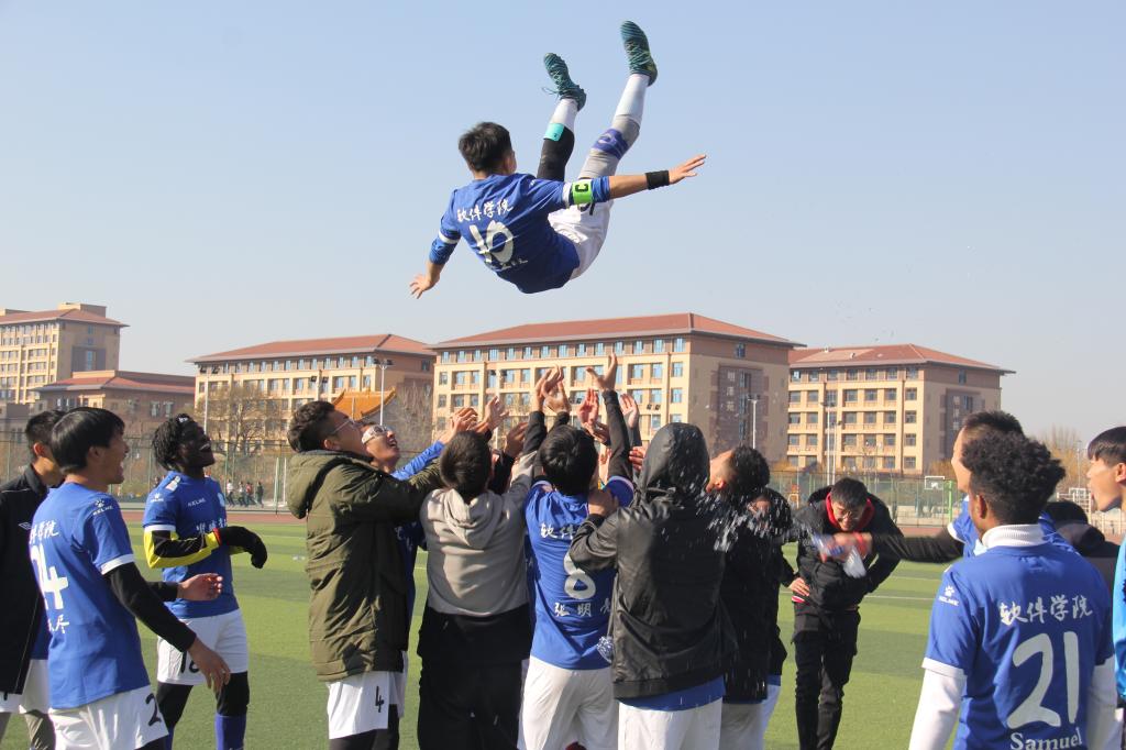 经过短暂的调整后开始了下半场。软件男足一上场便火力全开,多次将球带到对方球门附件造成威胁。就在双方僵持不下时,软件男足10号带球连过两人,将球带到中路晃过防守人一脚抽射,踢入球门死角,成功将比赛拖入点球大战。点球大战中,双方在前四次点球中都开花结果,在最后一次点球中,软件男足77号稳稳踢进,而对方点球却踢到门柱弹回。经过近九十分钟如火如荼的比赛以及惊险刺激的点球大战,最后304永利集团官网入口以5:4击败环境科学与工程学院,取得明向校区的冠军,随后将与迎西校区的冠军共同争夺304永利集团官网入口“求实杯”足球赛的总冠军。