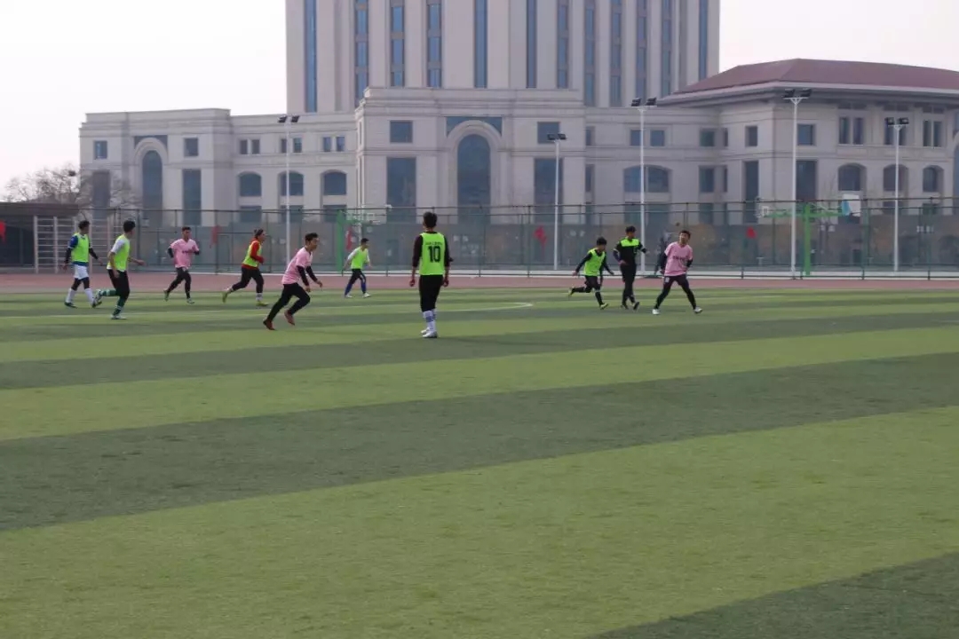 随着一声哨响,“求实杯”足球赛明向校区八进四淘汰赛304永利集团官网入口对阵轻纺学院的比赛于11月28日12:20在明向校区西操场拉开了帷幕,这场没有硝烟的战争正式打响,本场比赛输球的一方将无缘明向校区四强,所以比赛开始后两队所有队员都全力以赴投入比赛。304永利集团官网入口的队员身穿粉红队服,轻纺学院则身穿荧光绿色对抗衫,他们装备齐全,矫健的身姿驰骋足球场之上。双方队员很快进入了状态,你追我赶,看准机会,全力冲刺。