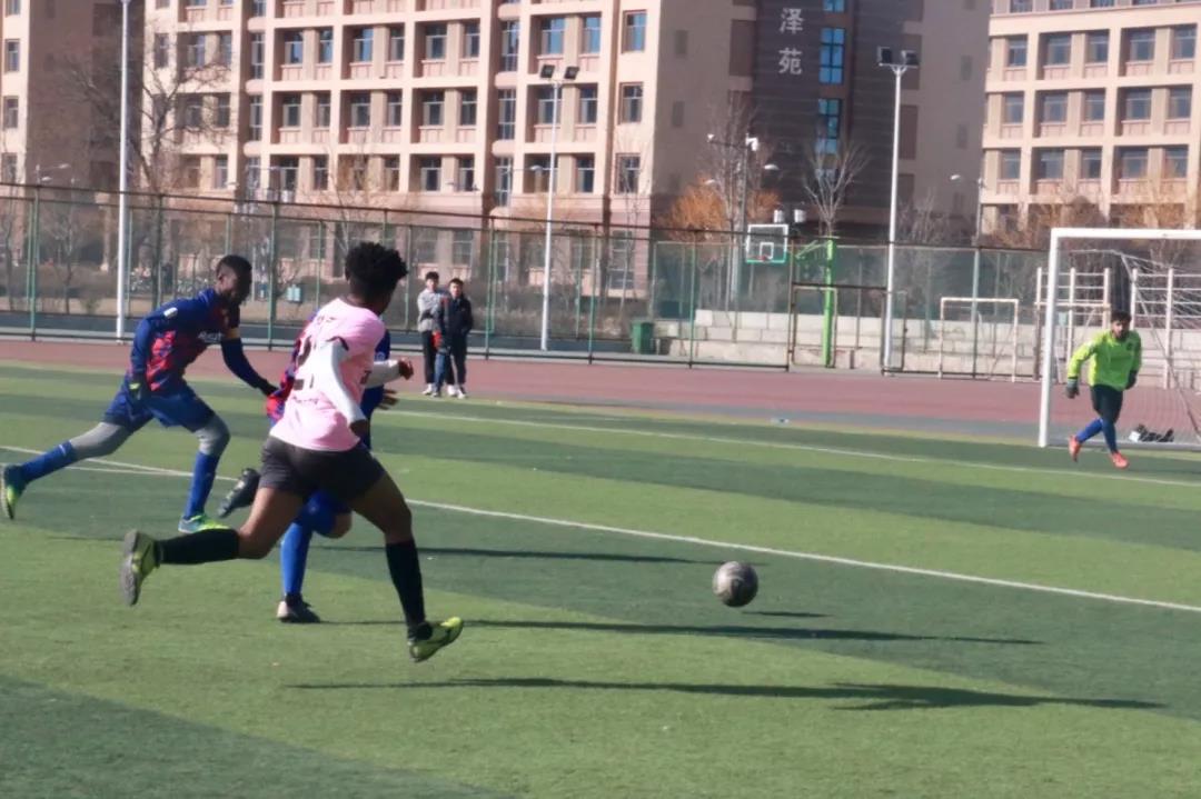 你来我往,擦枪走火似有星火燎原,整个球场的气氛瞬间紧张起来。国际教育学院队员们一往无前的气势,“杀”向软件学子,软件学子也不甘示弱,守门员高接低挡,严守球门,前锋熟练的运球走位,在对手的拦截下灵活穿梭,劈浪向前。双方都士气高昂,骁勇之姿可见一斑,上半场双方凭借着高质量的防守都没有取得进球。