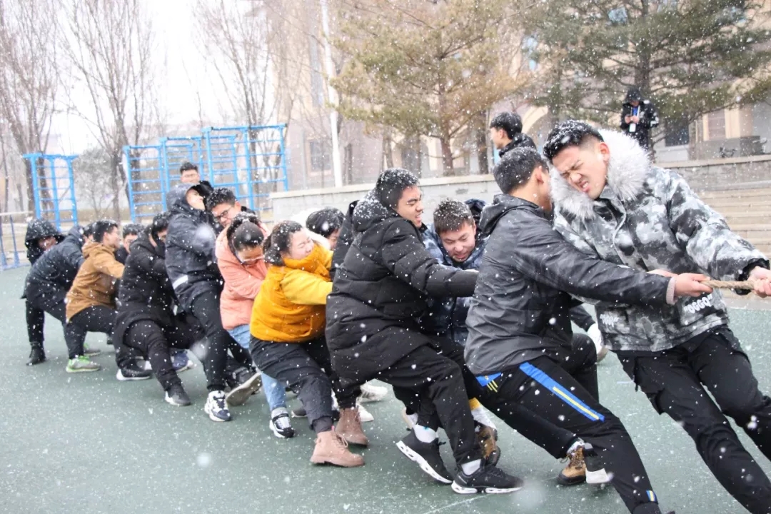 再大的风雪也阻挡不了同学们的热情,同学们都按时到场。比赛前,张希琼老师发言:“拔河比赛是永利集团官网举办的“一二·九”纪念活动,为了让同学们感受团队精神。友谊第一,比赛第二,希望同学们可以收获快乐,增强团队意识。”