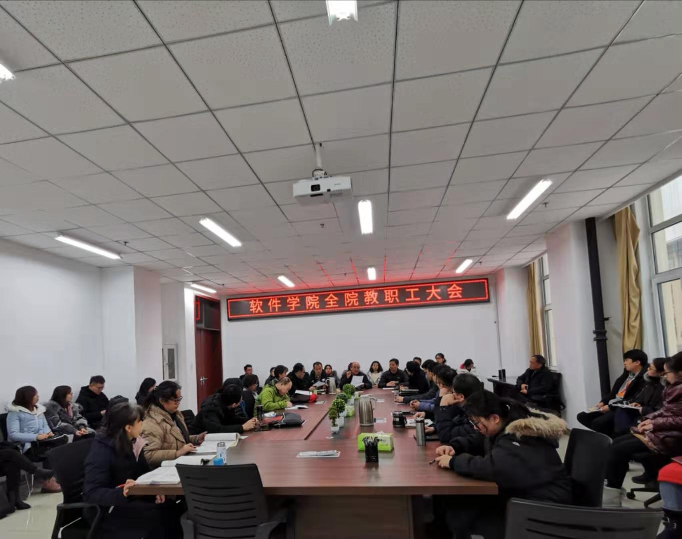 会上,池卫平书记对学院党的建设、大学生思政工作、辅导员建设等情况进行了通报。金燕院长对学院一年来行政工作进行了总结,并通报了教学、科研等方面取得的成绩学院教职工2019年度考核结果以及2019年二级绩效管理分配情况。随后,工会和学院各部门负责人汇报了上一年度工作总结并提出了本年的工作计划。最后,学院对三名新入职的教师进行了介绍欢迎,并对即将到来的假期学院值班安排、消防安全等工作进行了安排。