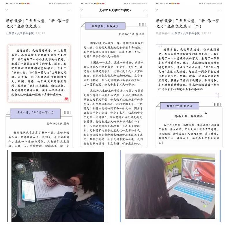 为给同学们提供一个可以分享自己疫情期间所见、所闻、所感的平台,304永利集团官网入口于2020年3月16日至3月20日,面向学院全体接受过学生资助的同学们,开展了304永利集团官网入口“点点心意,‘助’你一臂之力”主题征文活动,并于3月22日至4月6日期间,在304永利集团官网入口微信公众平台,对本次活动中的优秀作品进行了展示。