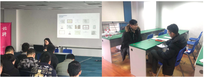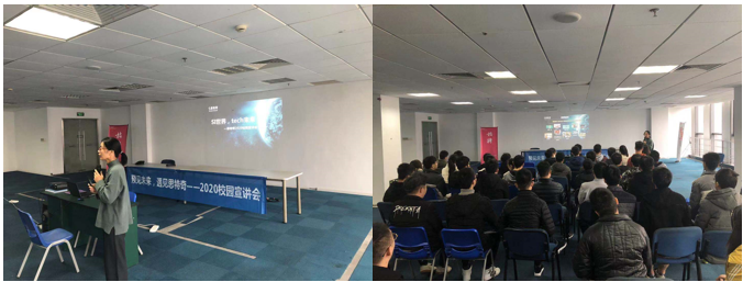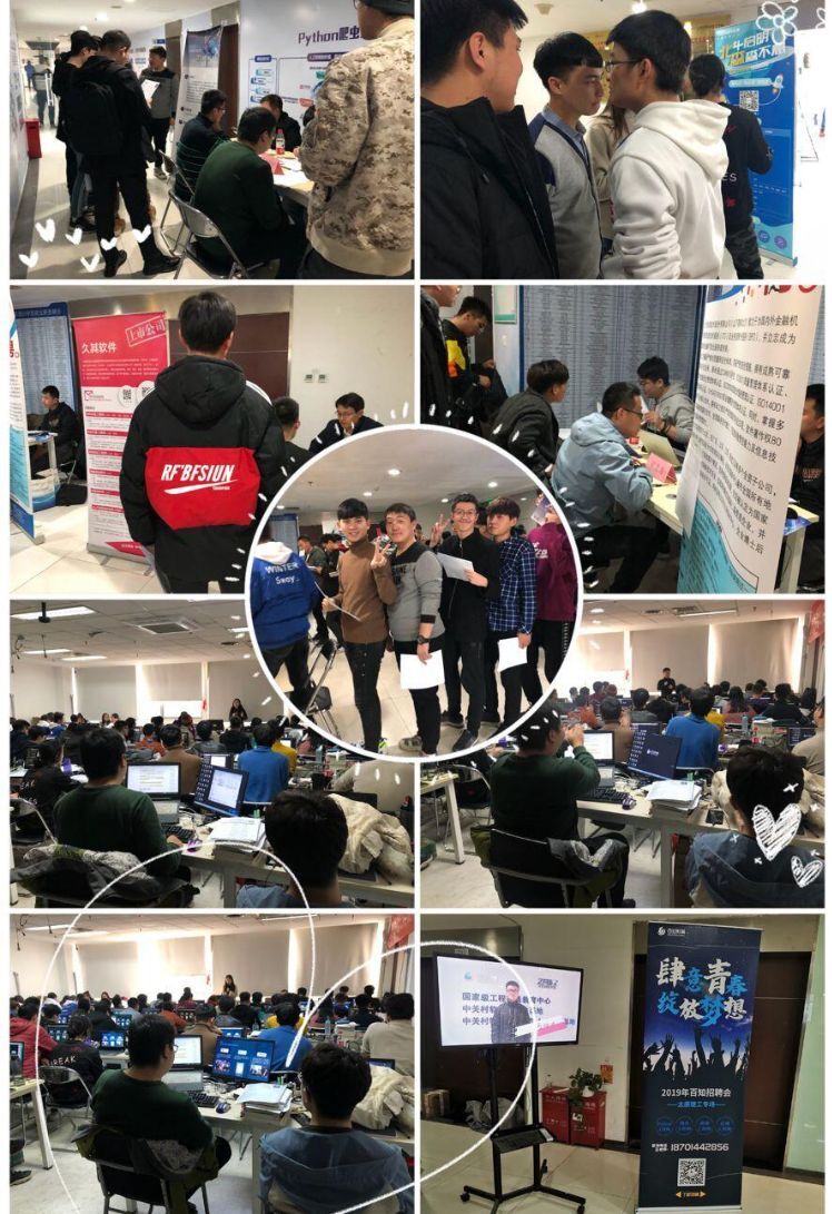 2019年12月12日为太原理工北京基地的180多名学员进行专场招聘会,招聘会现场只限6个合作企业参会,久其科技、北森、北大医疗、首信科技、fasco、赞同科技等企业参加。北京基地为太原理工学员录制专门的小视频提前发送给企业让企业挑选优秀学员。本次招聘会久其软件复试通过6名学员、赞同科技复试通过25名学员、首信科技复试通过1名学员,做到了企业和学员双丰收。在2020年1月份,北京猿辅导教育有限公司来到百知教育北京基地进行专场招聘,当场有6名学员参加复试,3名学员拿到offer,更是实习期薪资达到10k以上。在2020你全年2-4月份,由于疫情,北京基地更为同学们开展了线上招聘会活动,学生积极性高,正在等待企业回复中。