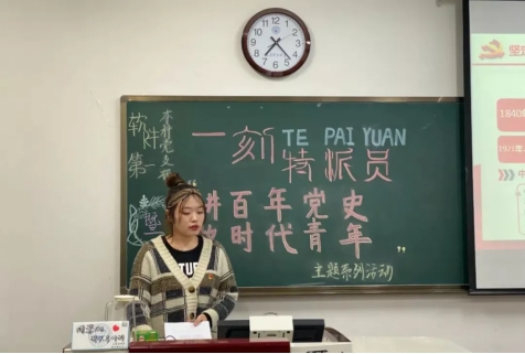 本期“特派员”由燕纪名、荣宇华、石轩硕三位同学担当,进行个人分享。首先燕纪名同学从东北抗联历史讲起,详细讲述了东北抗联的发展历程,阐述东北抗联精神的内核,引导广大同学向他们学习,发扬优良传统,弘扬新风正气。“学党史,跟党走”,荣宇华同学系统地梳理了党史进程,让同学们明白了要以先辈先烈的行动为指南,以实际行动报效祖国。最后,石轩硕同学分享了长征路上一个生死攸关的转折点——遵义会议。结合视频,身临其境的感受到当时的情境,了解到这次会议的重要意义,更获得“始终把马克思主义原理和中国实际情况结合起来”的重要启示。