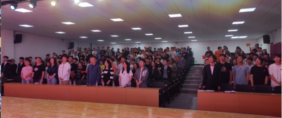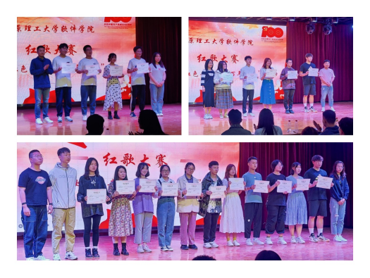 经过师生评委的评判,最终角逐出两个一等奖、四个二等奖、七个三等奖。颁奖环节之后,在场所有人员挥动手中的国旗与党旗,一同高唱《没有共产党就没有新中国》。