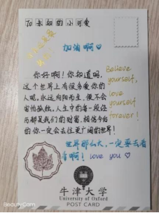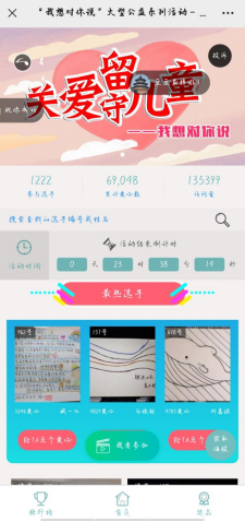 后续的线上活动为“我想对你说”主题征文比赛,报名者需先参与线下活动方可继续参与线上活动,参与者围绕“我想对你说”主题进行写作,写作完成后上传作品进行投票评选,投票结束后根据组织方提供的奖品对相应名次的志愿者进行奖励。明信片上充满童趣的绘画、一句句暖心的话语体现了志愿者们对留守儿童的关心和爱护。