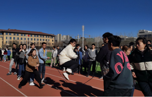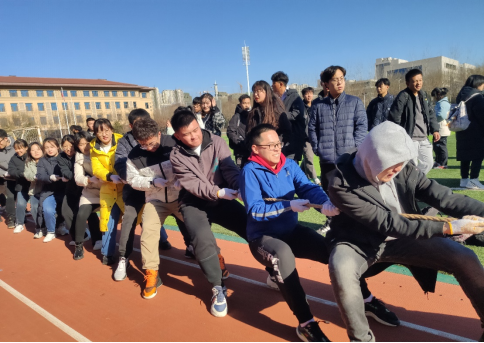 十一月末的寒风吹不散同学们对集体荣誉的热情。比赛开始前大家都积极地热身,激烈地讨论着比赛技巧。一声哨响,比赛正式开始!双方队员双手紧握绳子,他们一个个脚蹬着地,身体向后倾斜,连五官都在拼命地向自己的方向拉绳子。绳子中间的红绸带一会移向左边,一会移向右边,互不相让;啦啦队的呐喊声更是连续不断,卯足劲儿地为自己的队伍加油助威。随后,便开始紧张快乐的跳大绳比赛,只见运动员们灵活的助跑、起跳,展现了极佳的身体协调性与灵活性。老师们的跳绳比赛更是惹人关注,极大的活跃了现场气氛,为赛场带来了更多的欢声笑语,更为学生们展示了积极鲜活的一面,拉近了与学生的距离。