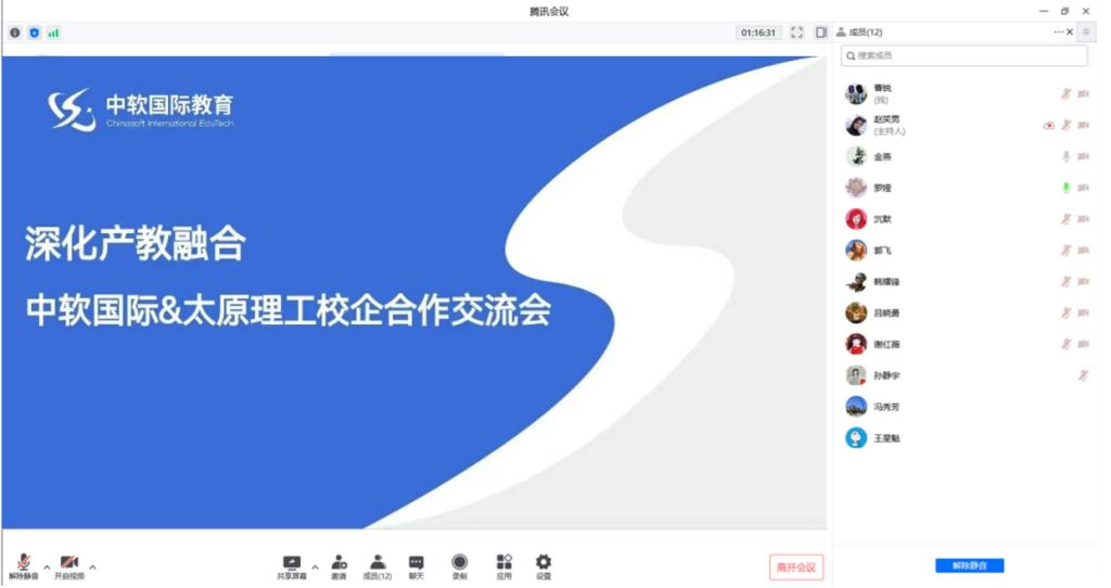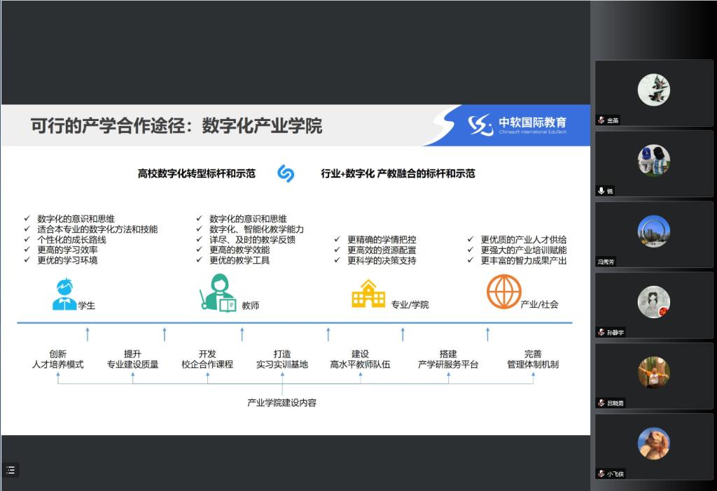 2022年4月13日,304永利集团官网入口与中软国际教育集团召开校企合作交流会,由于受到疫情的影响,会议通过腾讯会议在线上召开。中软国际教育集团副总裁、产学业务线总经理罗娅、教学主管韩耀锋,304永利集团官网入口院长金燕、党委副书记吕晓勇、副院长冯秀芳、副院长曹锐,以及系部负责人参加了本次交流会。