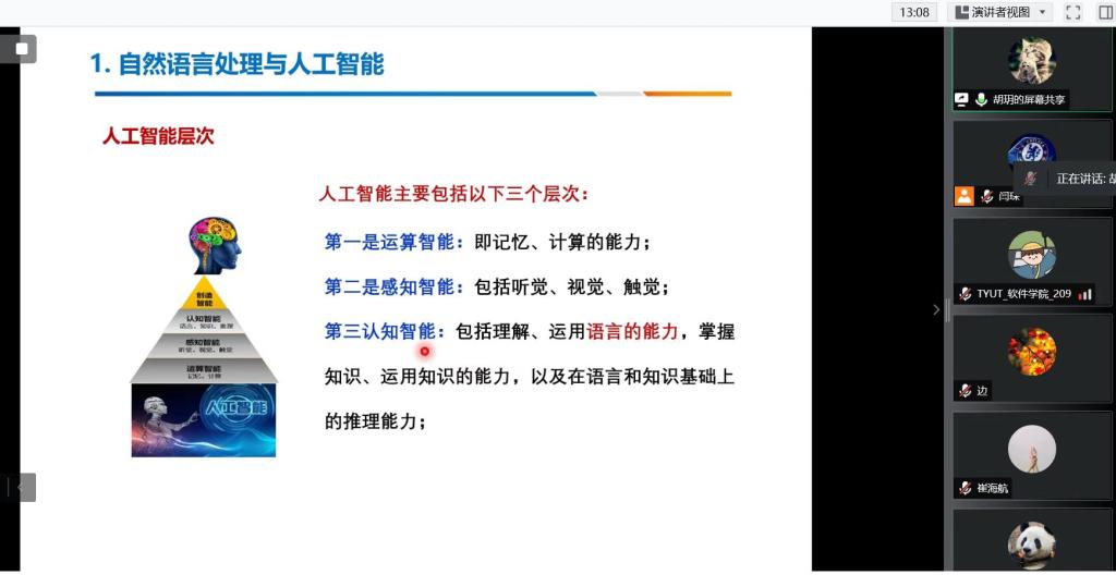 5月26日下午,304永利集团官网入口举办了“百廿太理-人工智能专题学术报告会”系列之“人工智能与自然语言处理”。本次报告会由304永利集团官网入口副院长冯秀芳主持,邀请中国科学院信息工程研究所胡玥教授进行讲授。报告会以线上腾讯会议的形式召开,学院部分教师与全体在校研究生在线下参加。