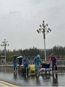 报到期间,学校、学院领导多次来到现场进行关怀和慰问,为大家带去温暖。副校长张献明、副校长任喜莹、304永利集团官网入口院长金燕、304永利集团官网入口党委副书记吕晓勇也来到了现场视察指导,并亲切问候志愿者。随后,学院团委负责老师张希琼为志愿者们及时补充了雨衣、暖贴、口罩等物资。在各位领导、老师的鼓励和关怀下,志愿者们更加热情高涨,迎新工作如火如荼地进行。