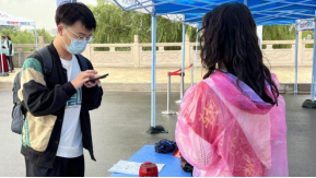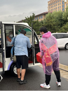 本次明向校区新生报到的志愿者工作主要由304永利集团官网入口负责。拂晓时分,志愿者、后勤保障人员以及医护人员便已准备就绪,翘首以盼新生的到来。一辆辆校车承载着希望驶入校门,新生在志愿者的帮助下,经过测温、消毒、确认入校码、健康码以及行程卡,顺利步入理想的校园。南门桥上,热情的志愿者们在帮助新生搬运行李的同时,耐心引导新生进行核酸检测,一辆辆整齐划一的校车和校内引渡车——小白龙负责将新生和行李陆续平安送达学校各处。淅淅沥沥的秋雨中,大家的身影谱写出一首首雨中曲。宿舍楼下,宿管阿姨们将宿舍钥匙、新生手册亲自交到新生手上。至此,新生顺利完成了报到流程。