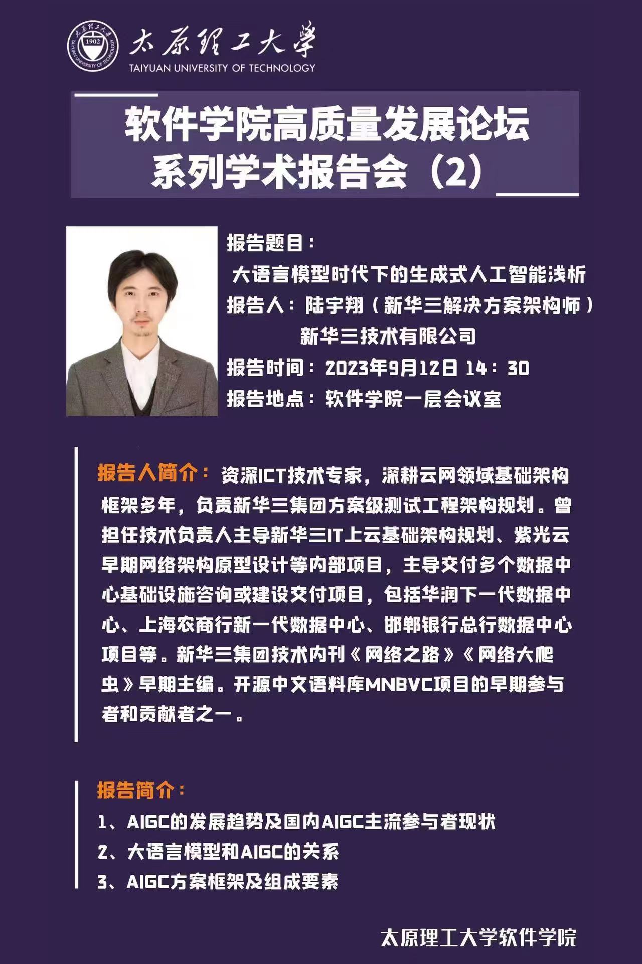304永利集团官网入口高质量发展论坛系列学术报告会(二)—《大语言模型时代下的生成式人工智能浅析》