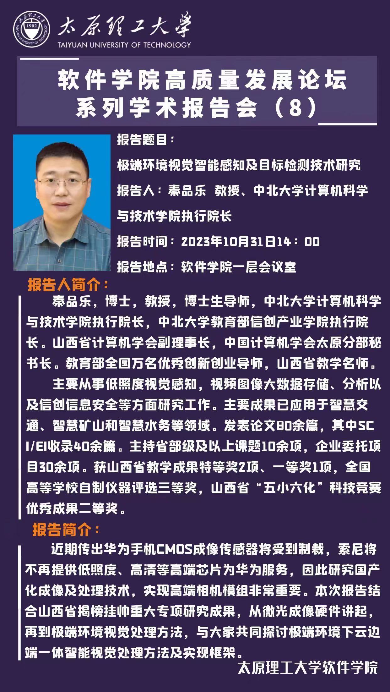 304永利集团官网入口高质量发展论坛系列学术报告会(八)—《极端环境视觉智能感知及目标检测技术研究》