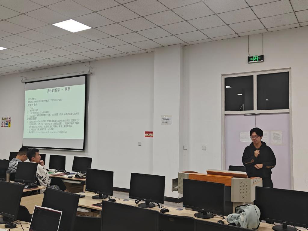 见面会上,指导老师闫琛向新加入算法组的同学表示热烈欢迎,并强调了算法设计能力对本科生专业素质提升与工程能力培养的重要性,并勉励同学们认真学习。随后,算法组负责人孙若轩同学以个人经历向同学们分享了算法学习的乐趣。然后,张亚奇同学详细讲解了算法竞赛的比赛方式,并从学习资料、学习方法等方面分享算法学习的经验。最后,杨浩文、王淳等同学介绍了实验室的学习环境和规章制度。本次见面会增进了新老同学之间的认识与了解,增强了实验室的凝聚力,并为新同学后续学习奠定了扎实的基础。