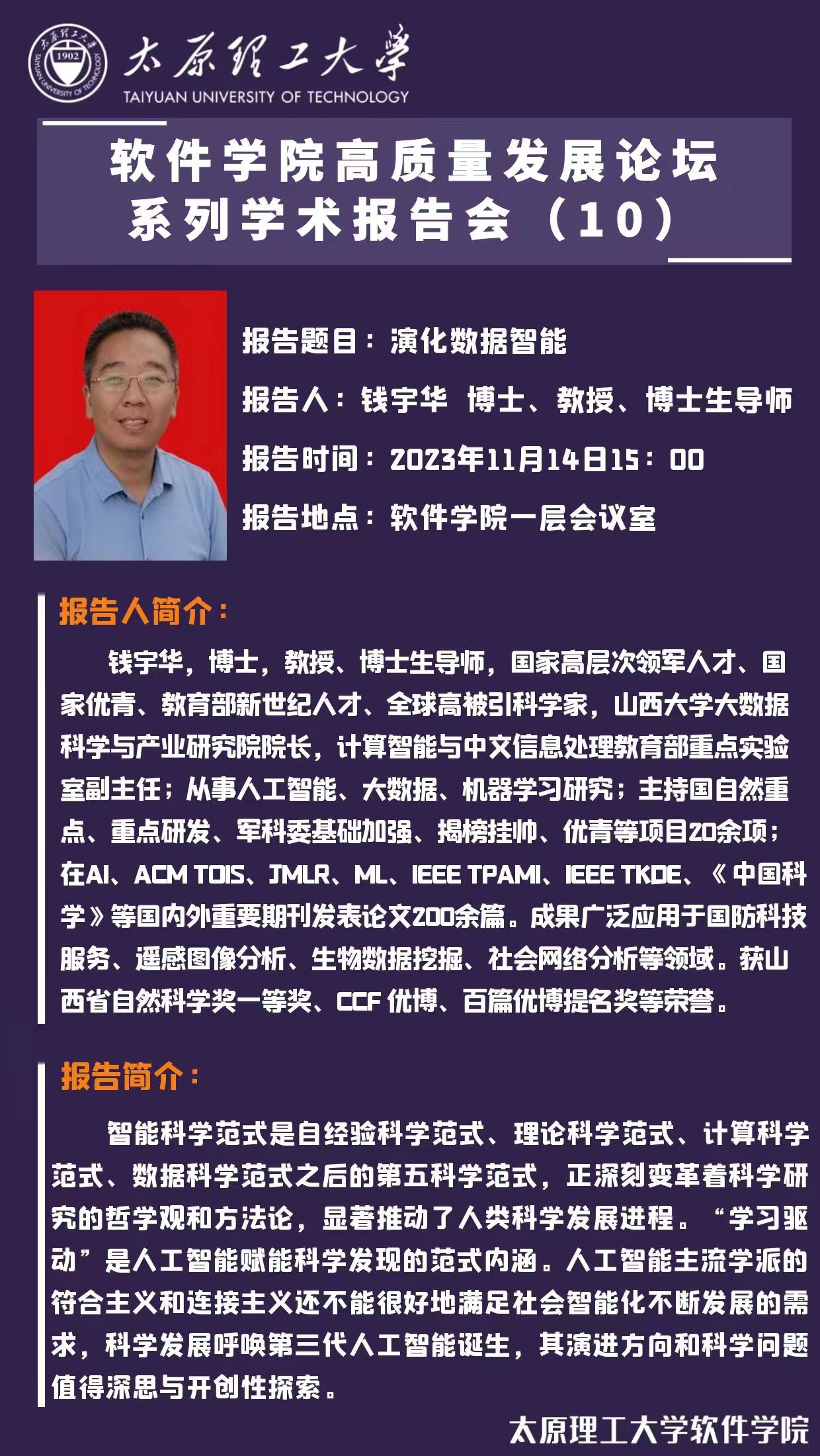 304永利集团官网入口高质量发展论坛系列学术报告会(十)—《演化数据智能》